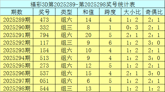 类型判断:上期奖号为544。号码4近10期出现5次,走热,号码出现频次较高,上期各位号码总体较热,本期关注温码开出。