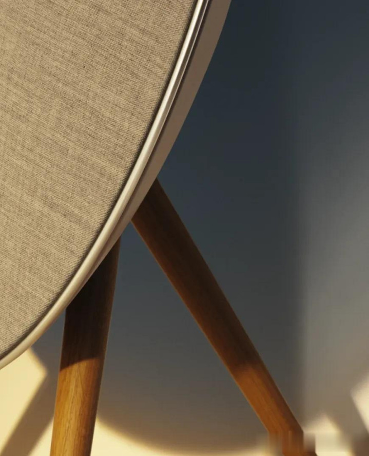 在材质的选择上,Beosound A9 尽显奢华与质感。顶部的铝制控制面板,触感冰凉细腻,经过精心的拉丝工艺处理,不仅有着金属独有的光泽,还增添了一份耐用性;机身包裹的高品质织物,柔软亲肤,既有效地减少了声音的反射和干扰,又为整个音箱增添了一份温暖的质感,使其更能融入家居环境;底部的木质支架,选用上等木材,纹理清晰美观,与金属、织物搭配在一起,形成了自然材质与现代工艺的完美融合,彰显出一种低调奢华的品味。